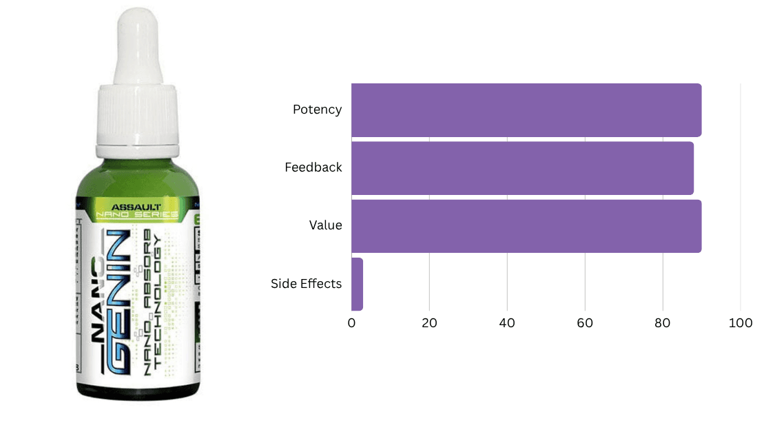 Nano Genin by Assault Nano Series is a cutting-edge natural anabolic powered by Nano Absorb Technology, making it up to 6x more effective than standard muscle builders. Featuring Laxogenin, a non-hormonal muscle-building compound, Nano Genin promotes lean mass, strength, and recovery without impacting natural testosterone or requiring PCT.