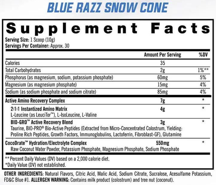 - 7g BCAAs (2:1:1) plus glutamine and citrulline for muscle recovery and endurance