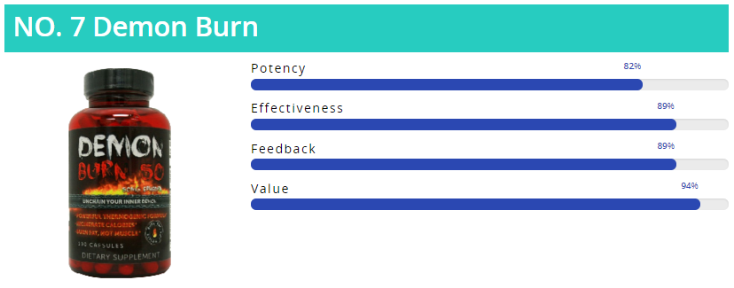 Demon Burn 50 returns to the Top 10 for the 5th year in a row with arguably one of the strongest appetite reduction formulas available today. As a hardcore fat loss aid Demon Burn 50 also delivers in terms of intense energy, mental alertness, and stands out as a great value as it is one of the few fat burners on the market that comes with 100 servings per bottle. Read all the Reviews Here.